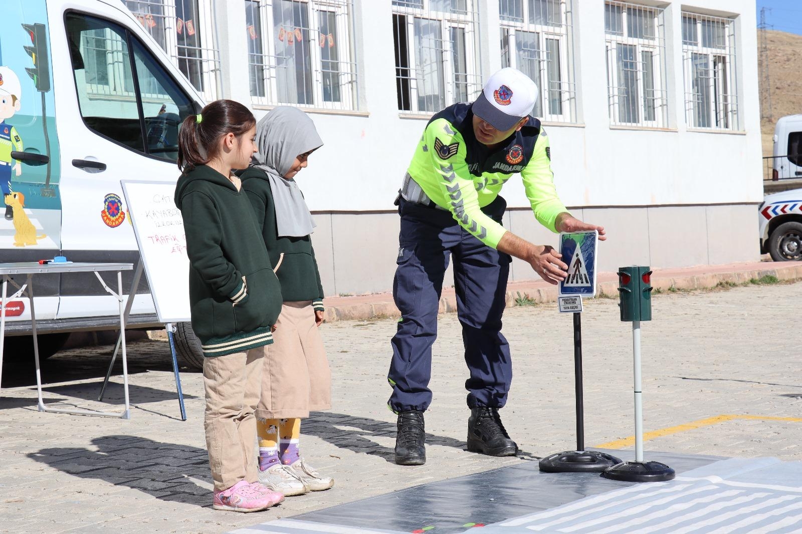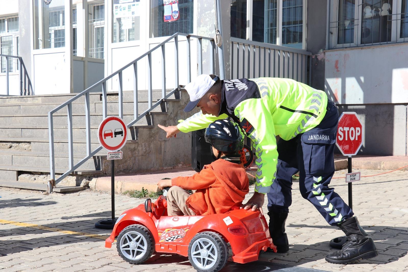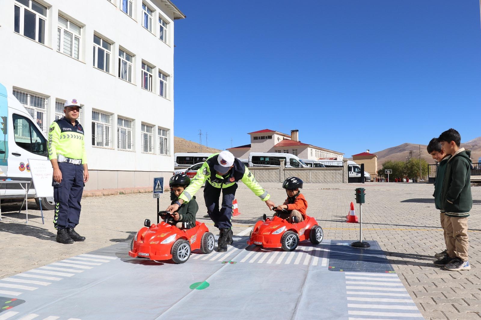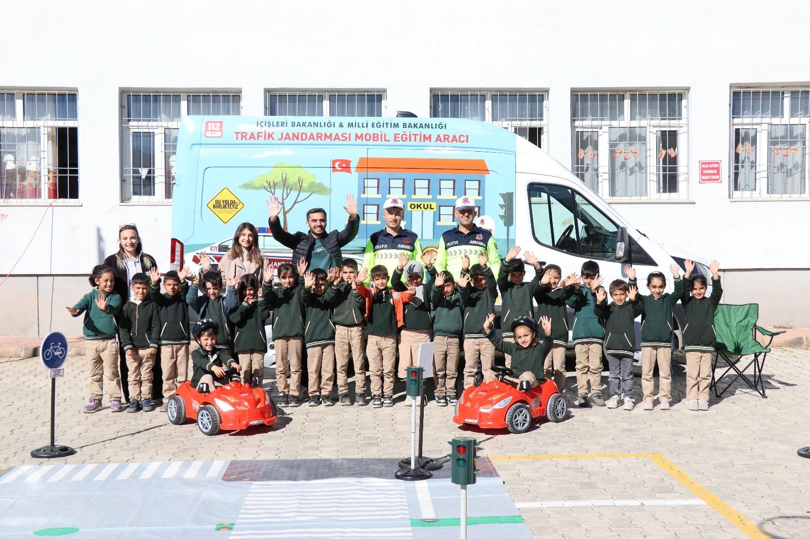 Eğitimi ilgiyle takip eden öğrenciler, trafik kurallarını eğlenerek öğrenme fırsatı buldu.